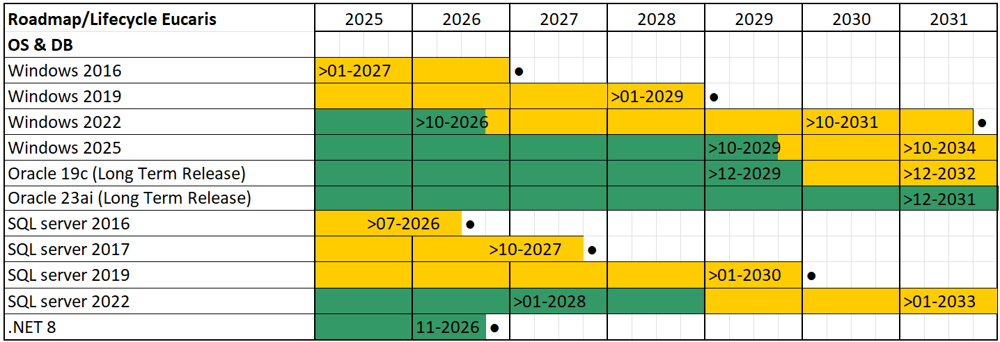 EUCARIS supports the following Operating Systems (OS) and Databases (DB) for the EUCARIS application.